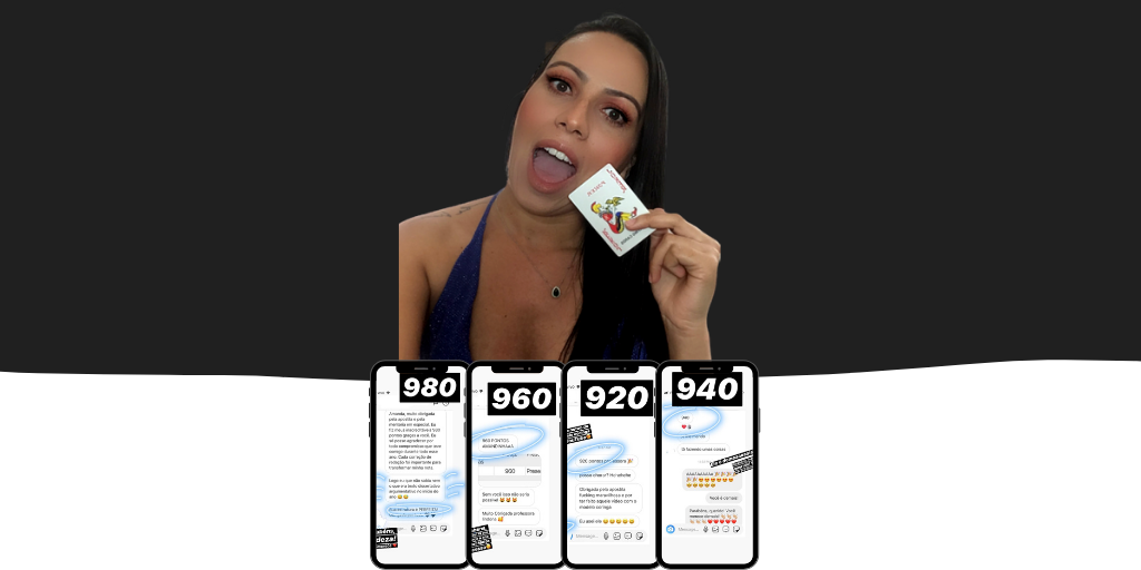 O curso todo tem a demanda de 5 horas e depois delas, a nota acima de 900 pontos na redação será uma realidade na sua vida.